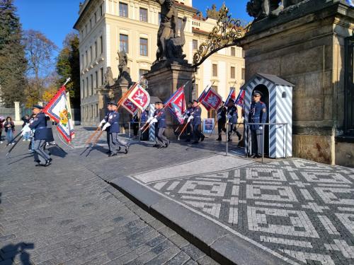 Dne 25. října 2024 vyrazily třídy 4. A a oktáva na historicko-literární exkurzi do našeho hlavního města. Ze všeho nejdříve jsme absolvovali krátkou procházku Královskou cestou, kolem Svatovítské katedrály, Malou Stranou, kolem historických domů a poslechli si ke každé z památek zajímavý výklad. Na Hradčanském náměstí nás pak čekalo překvapení; spatřili jsme výměnu stráží u Pražského hradu.