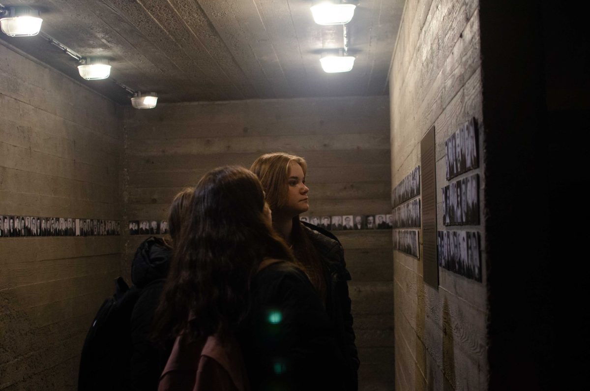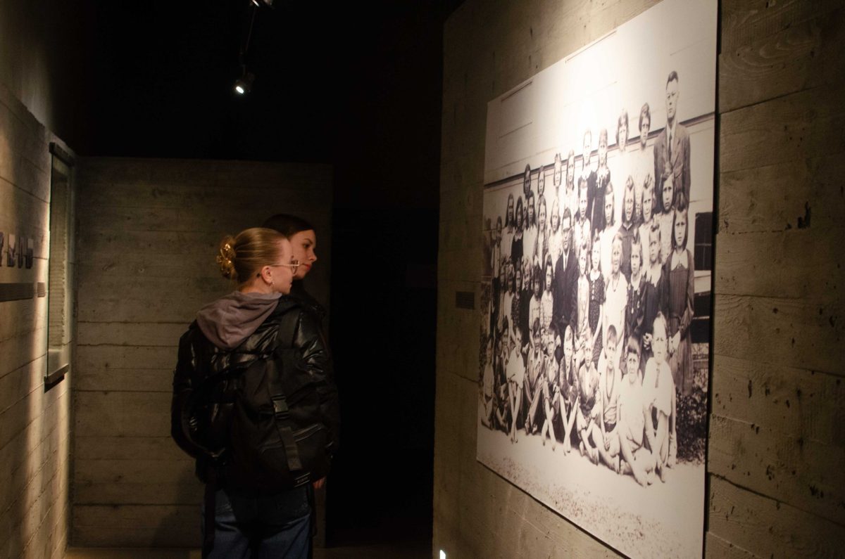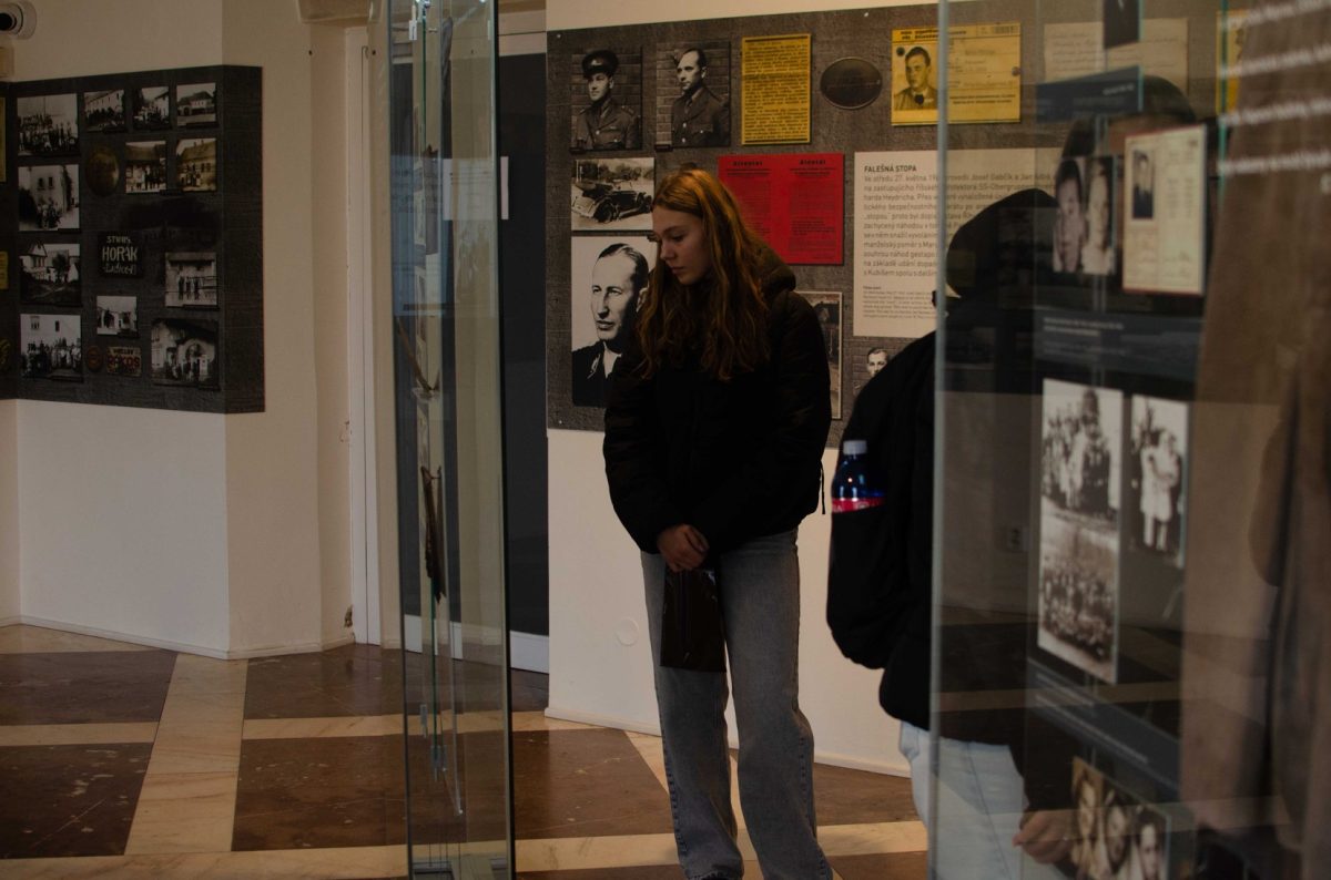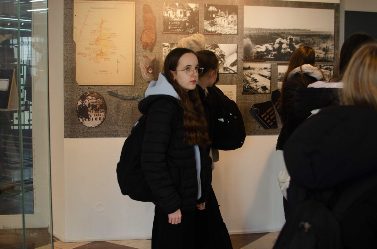 Pokračovali jsme do další expozice, kde jsme mohli žasnout nad zrůdností nacistického režimu při prohlížení fotografií z likvidace Lidic. Jedna z nejhrůznějších fotografií byla ta, kdy vojáci vykopávají hroby na lidickém hřbitově s úmyslem rozprášit je a zničit tím úplně vše, co je s historií Lidic spojeno.