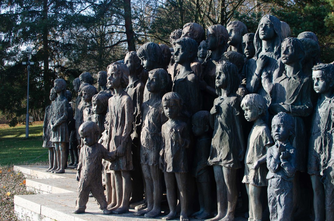 Následovala procházka po areálu bývalých Lidic. Na místě posledního odpočinku lidických mužů jsme se dozvěděli, že mezi 173 zastřelenými bylo i mnoho chlapců od 15 let, tedy dětí. U působivého sousoší lidických dětí od Marie Uchytilové nám bylo vysvětleno, že ze všech 105 dětí se zachránilo jen 17, ostatní děti byly zavražděny. Snad nejtěžší životní zkouškou musely projít ženy. Přišly o své děti a muže a potom byly internovány do koncentračního tábora. Nepřežilo jich 60.