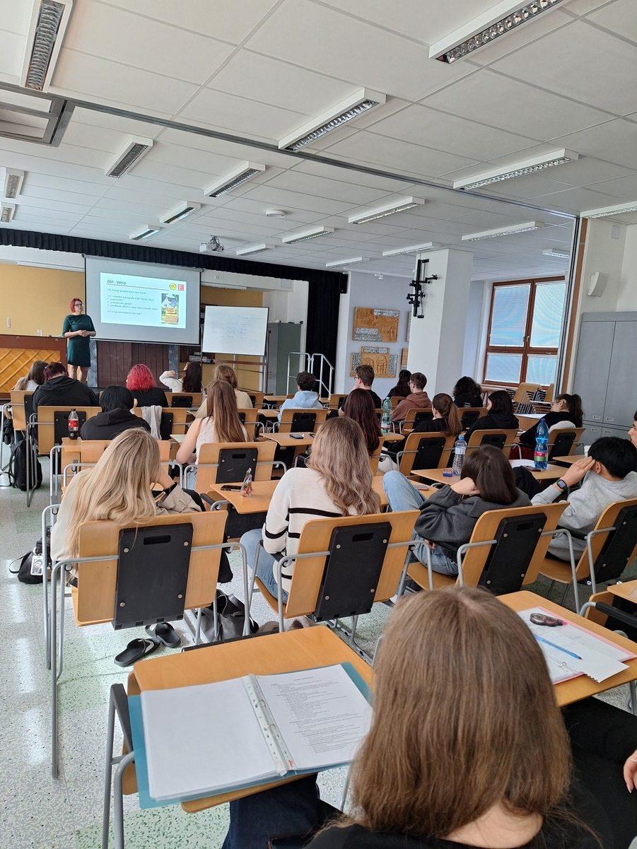 V pondělí 20. 4. 2026 se druhé až čtvrté ročníky ekonomického oboru zúčastnily přednášky Ing. Markéty Růžičkové z FÚ Jihlava.